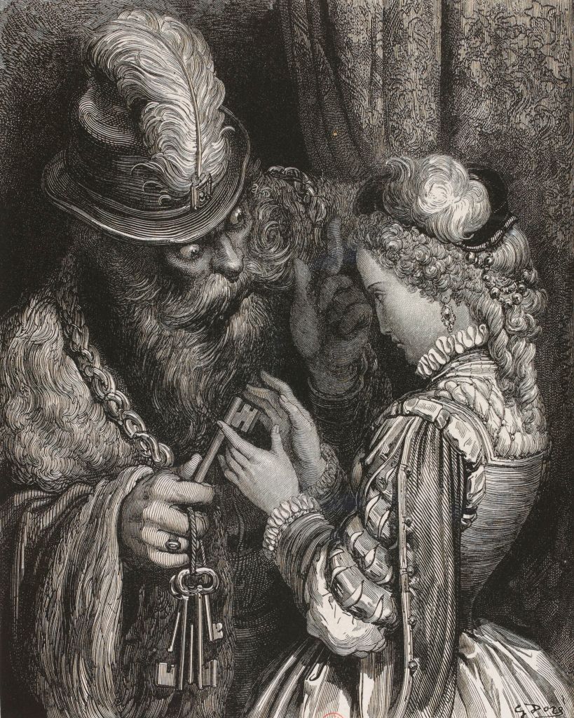 The title character punishes the curiosity of women with murder; he has already killed three women before he marries his new bride Isaure. He keeps their remains in a locked cupboard – and gives the key to his wife to test her, with strict instructions not to open the door. She fails; her terrified scream shatters the classical pose of French opera. It has discovered terror and suspense; four months after the premiere, revolutionaries would storm the Bastille.