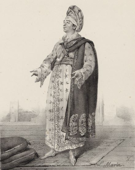 Le Calife de Bagdad was Boieldieu’s seventh opera for Paris, an Arabian Nights fantasy. The Caliph of Baghdad, Isauun, is in the habit of disguising himself while he seeks adventure. His nom de guerre is Il Bondocani; all the soldiers and guards know to obey a man bearing that title. Attired in common garb, the Caliph rescues Zétulbé and her mother Lémaïde from brigands in the desert. Each night for a month, he has appeared under Zétulbé’s window while she strums her lute. The caliph longs to marry her, but wants to be loved for himself, not for his position. Incognito, he asks Lémaïde for her daughter’s hand – but the good woman suspects the young man is a brigand chief. So too do the local militia, tipped off by the Emir, whose offer of marriage Zétulbé rejected, and who now wants revenge. Il Bondocani and the two women are nearly arrested – but the Caliph reveals himself, and raises Zétulbé to the throne.