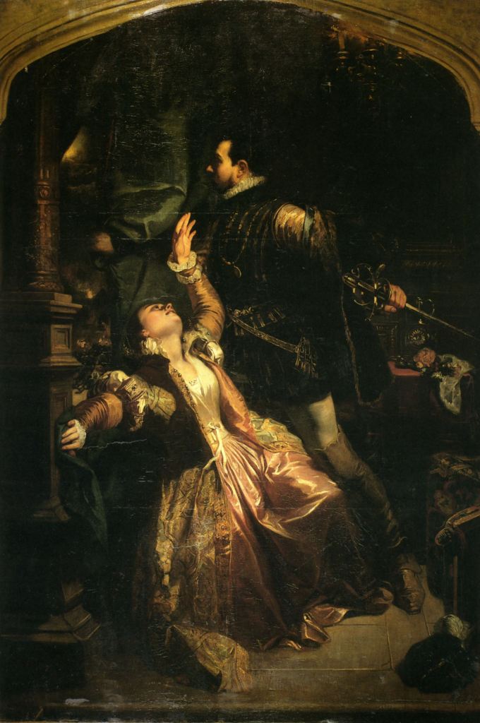 Bellaigue called these two acts “a charming tableau of aristocratic and princely life at the end of the 16th century”. Some critics complained that they lacked passion and drama. Fétis noted that the plot developed slowly, and the interest did not begin until the middle of the third act; until then, it is a demi-character opera, where the musician alone maintains attention in scenes devoid of action. L’Indépendant thought the first three acts were graceful and skilfully arranged for visual spectacle and contrasting music effects; and the catastrophe of the last two acts is more interesting because of this contrast; but the opera lacked the powerful dramatic unity of Robert-le-Diable. Le Ménestrel thought the opera started weakly because there was no dramatic interest; as the story moved toward its climax, the composer’s inspirations grew to a sublime denouement. But Bellaigue believes these acts provide a skilful contrast between the refined feelings and the wild passions of the Renaissance.