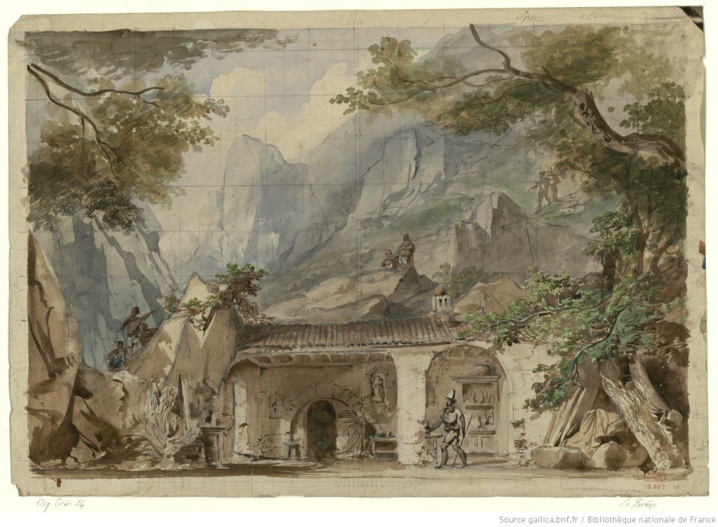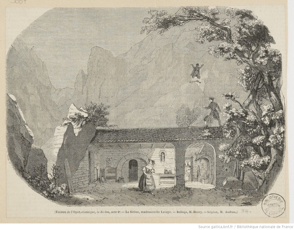 Act I takes place in the presbytery. The Duke of Popoli has received a blackmailing letter from “the Siren”, demanding the 500,000 piastres in exchange for silence about the late Duke’s child. The letter asks the Duke to come to the Pietra-Nera that night. The Duke, however, intends to murder Tempesta, rather than pay him; fifty Calabrian hunters will accompany him to the rendez-vous, and shoot the brigand dead. By a ruse, Scopetto makes the Duke suspect Scipion, who also heads to the Pietra-Nera that night with Bolbaya, intent on catching the Siren.