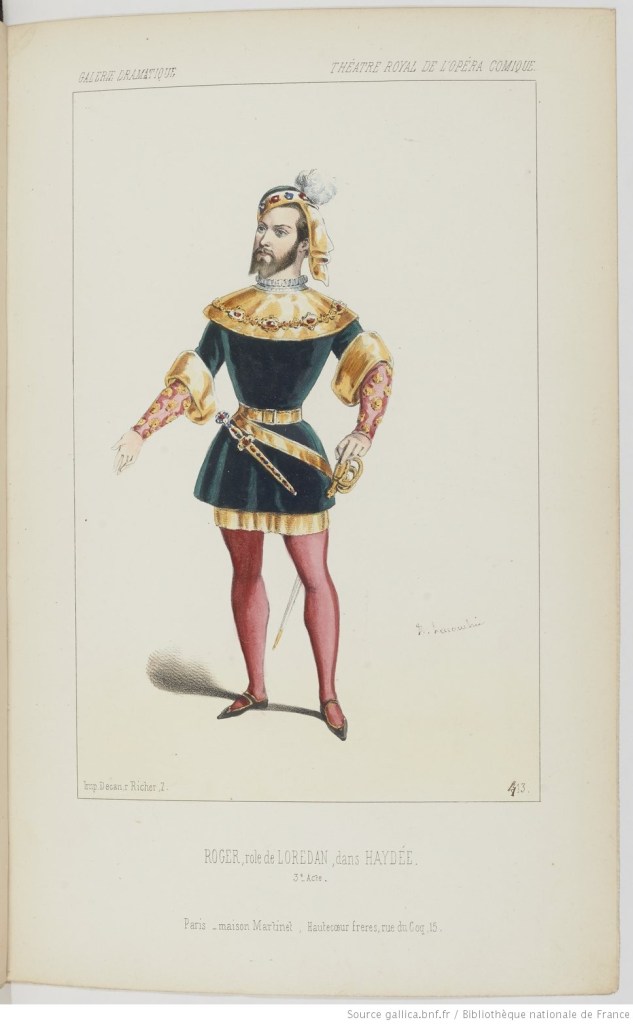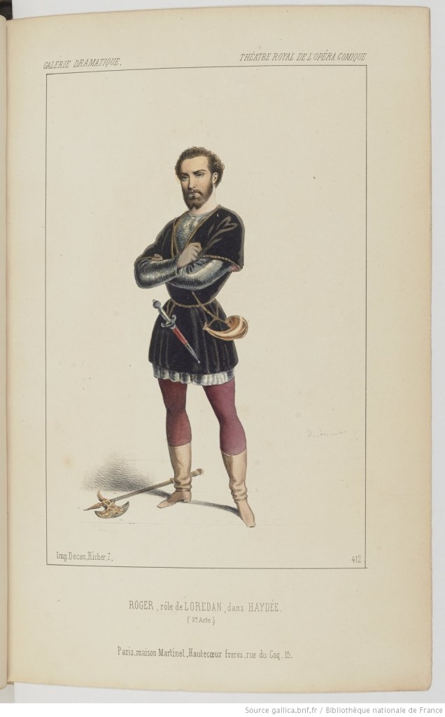 [iv] A. d’Artigues, Courrier français, 11 January 1848 : « Cette scène est très dramatique, surtout par la manière dont la joue M. Roger; ce qui pour le public ajoute à l’effet de la situation, c’est une discordance soutenue pendant quelques mesures entre le chant et l’accompagnement. Cette excentricité, nous le croyons fermement, n’eût pas été aussi bien accueillie de la part de tout autre que de M. Auber. Nous avouerons que la situation, le sentiment à exprimer peuvent autoriser ces accords faux pour un cri d’épouvante, pour un instant rapide où le désordre de la passion à rendre passe dans la musique et la marque d’une couleur étrange, surnaturelle ; mais, l’occasion n’était pas telle ici et il ne pouvait qu’être pénible d’entendre se prolonger cet accompagnement en mineur sous un chant en majeur. La chose a réussi; cependant gare aux imitateurs. »