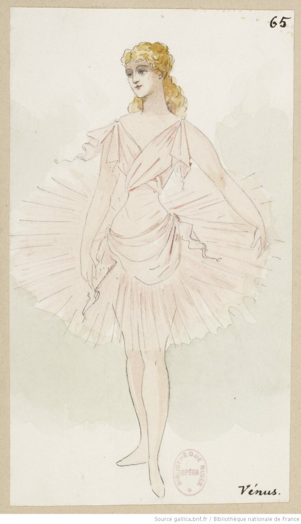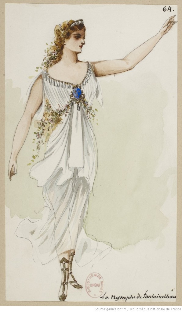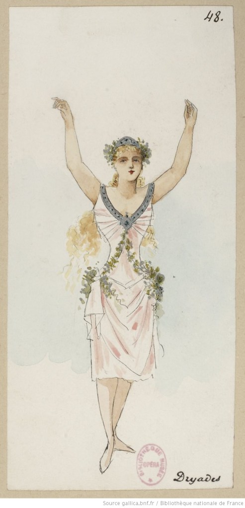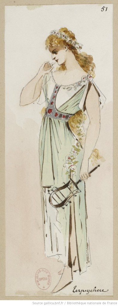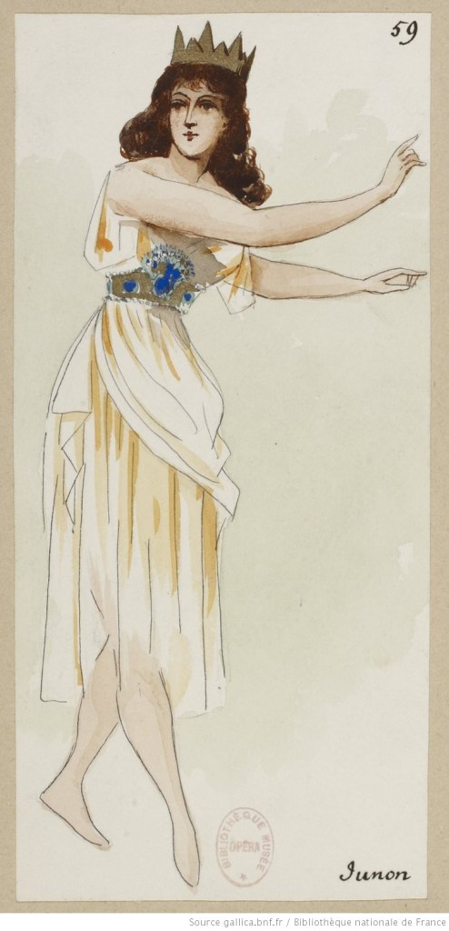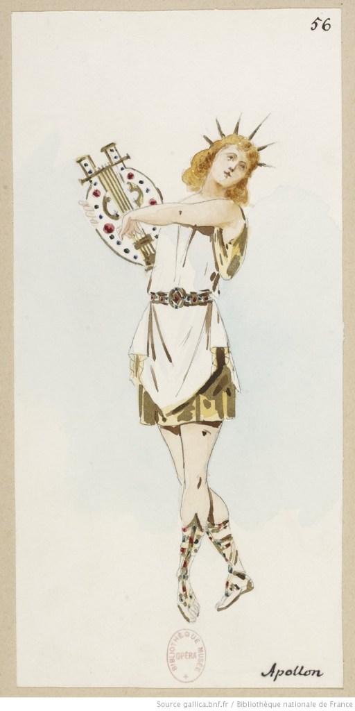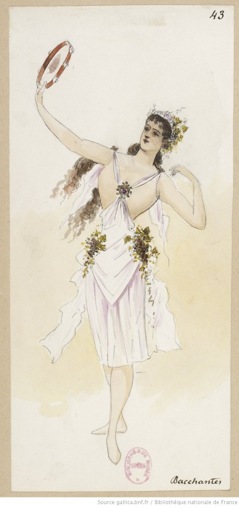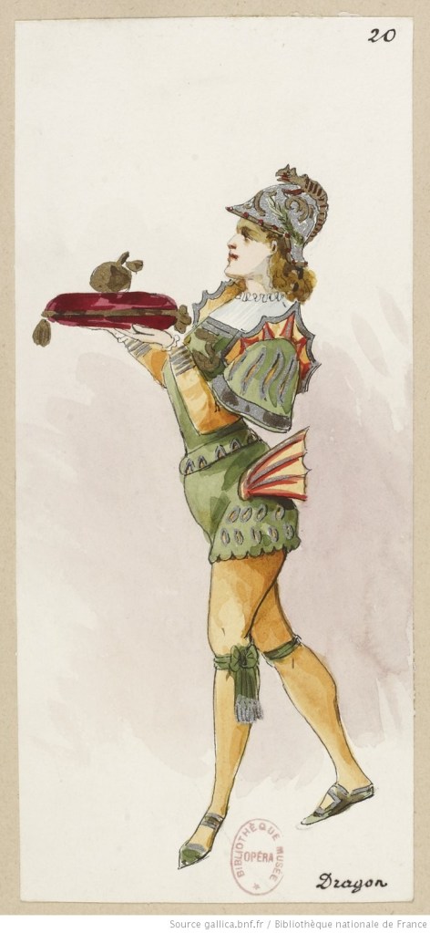 The act’s second tableau, set in the box hedge gardens of Fontainebleau, is largely occupied with a mythological ballet, depicting the Olympian gods, the dragon guarding the golden apples of the Hesperides, Cupid and Psyché, and the presentation of the apple to the Duchesse. Much of it is based on 16th century melodies. “Bacchus” is exciting, while “Apollo and the Muses” are grave and beautiful. L’Amour, though, is pure Gounod! Gounod himself considered the dance music a model of form, colour, and instrumentation.