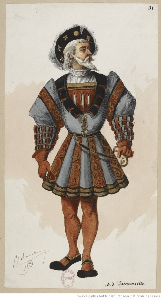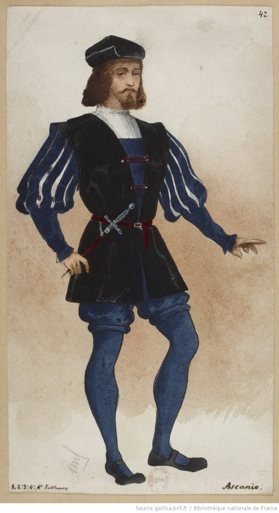 The opera takes place in 1539, seven years after Berlioz’s opera. Benvenuto is now the favourite artist of François I, while his pupil, Ascanio, is pursued by the king’s mistress, the Duchesse d’Étampes (Anne de Pisseleu d’Heilly) – whose lovers tend to end up dead. Ascanio loves Colombe d’Estourville, daughter of the provost of Paris. So does Benvenuto. The Duchesse does not take kindly to having a rival; nor does Benvenuto’s mistress Jeanne, the hot-tempered model “Scozzone” (“Daredevil”).