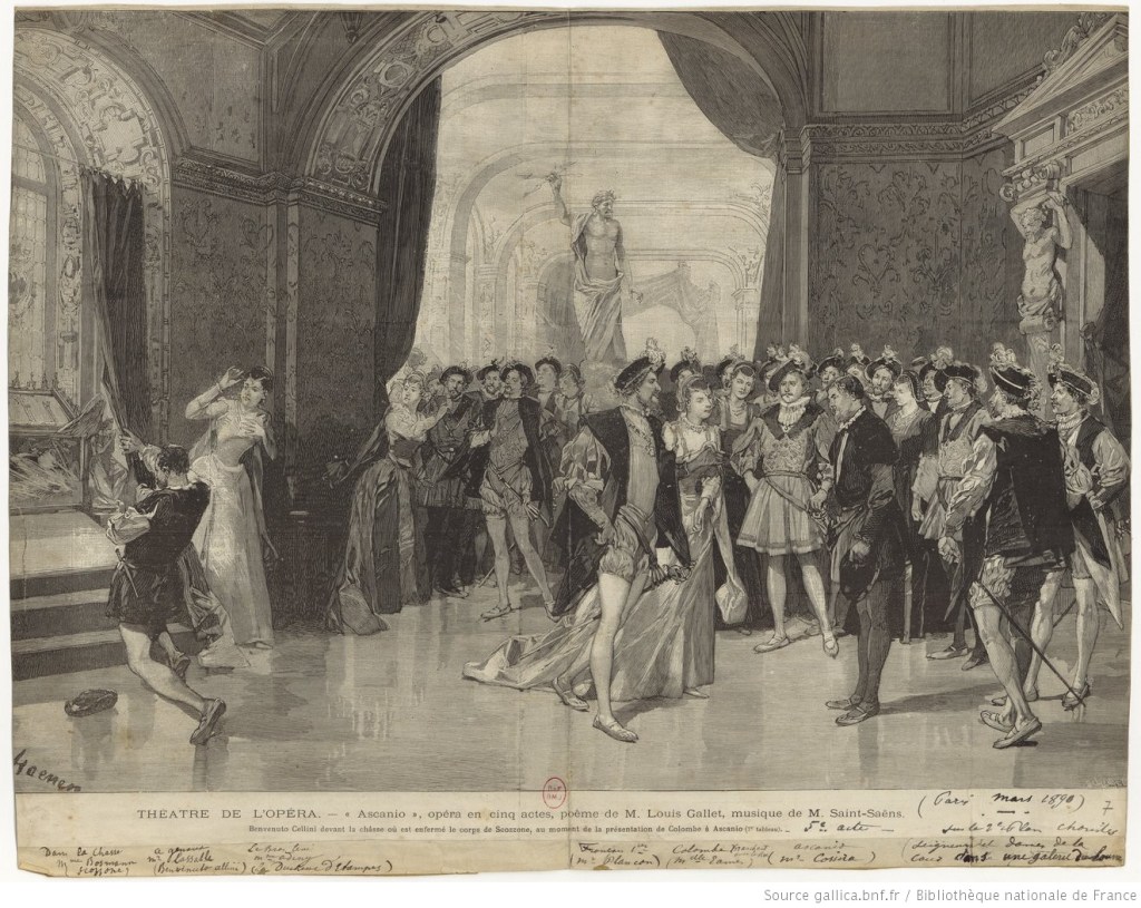 - Libretto: Louis Gallet, after Paul Meurice’s play Benvenuto Cellini (1852) [after Alexandre Dumas’s novel Ascanio (1843)]