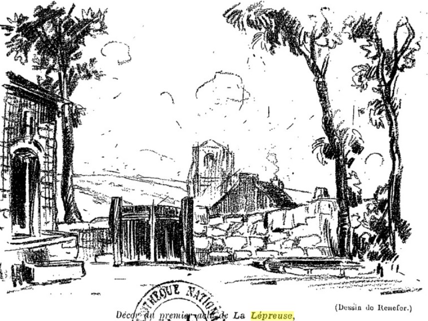 The opera is based on an 1896 play by the then-20-year-old playwright, Henry Battaille, who said the work was about Love and Death, Hatred and Pity. La lépreuse – in fact, there are two leper women in this opera: old Tili the witch, whom children throw stones at in the street, and her beautiful daughter, Aliette, who carries the disease, but shows no symptoms. Ervoanik wants to marry Aliette, despite his parents’ furious objections. However, Ervoanik already has a wife and children. When Aliette finds out, she deliberately infects Ervoanik with leprosy by sharing her glass with him. In a blasphemous allusion, her mother says: “Prenez maintenant – ceci est mon sang.” (Effectively: “Take and drink – this is my blood.”) At the end of the opera, Ervoanik is banished from the village, and confined to the “white house” for lepers. Aliette, now suffering leprosy herself, appears, and the two walk hand in hand to their exile.