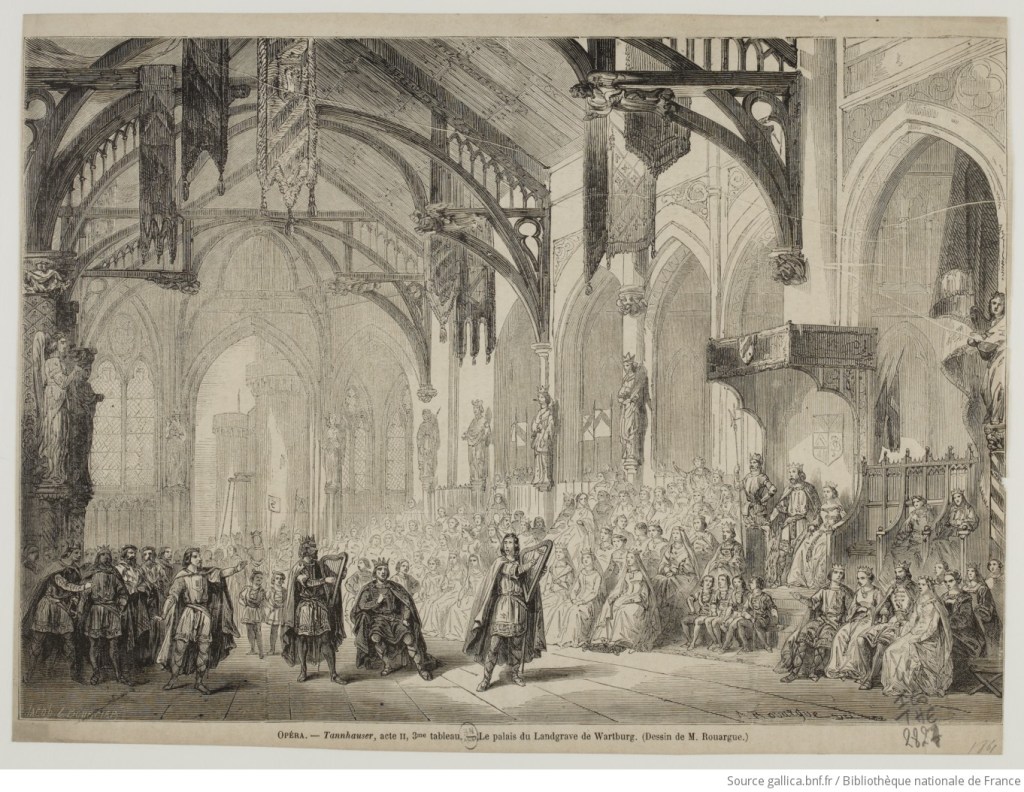 Nor was the libretto to French taste. “For any French reader or spectator, what Richard Wagner’s poems lack the most is the art that brings characters to life with a real vitality, animating them with human emotions capable of evoking similar ones in us, be it tenderness or terror, joy or pity,” wrote Paul Smith (Revue et gazette musicale de Paris)28. “Tannhäuser is no exception: it leaves us perfectly indifferent, and we are unsure how it contributes to the system, where dramatic action should be the main goal.” Even La Causerie29, indignant at the cabal against Wagner, doubted whether the libretto contained sufficient dramatic elements to sustain interest over three acts. “Perhaps yes, for a German audience that willingly feeds on vagueness and abstractions.” But it did not “contain in any way the elements of action constituting the essence of lyrical drama as we understand it in France”.