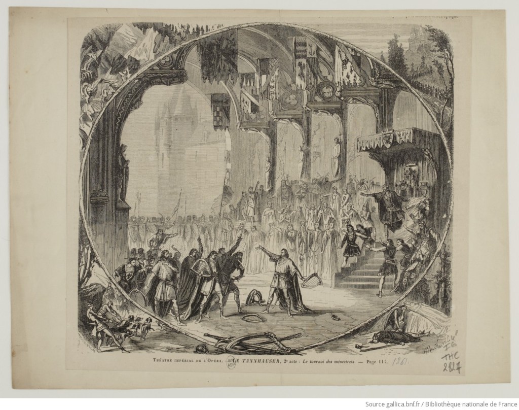 In 1860, Napoleon III gave orders for the Paris Opéra to stage Tannhäuser. Princess Metternich had seen it in Dresden, and “spoke in such enthusiastic terms in favour of it that the Emperor at once promised to give orders for its production”.11 After 164 rehearsals – the conductor Dietsch could not grasp Wagner’s tempi – Tannhäuser was finally performed, on 13 March 1861: “a disastrous date in Wagner’s career”, La Causerie12 suggested.